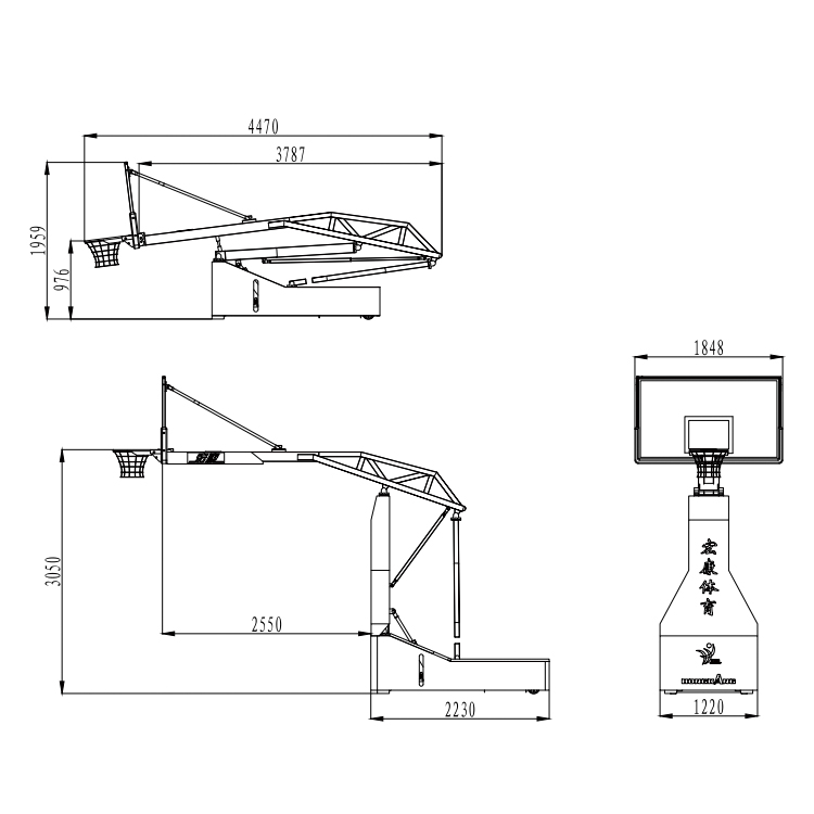 篮板:1800x1050mm 高强度安全玻璃篮板